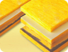 ガラス原料であるケイ酸(砂)を高温溶融、高速回転力を利用して纎維化し、一定の形態に成形した人造鉱物纎維で微細な連続気孔を形成していて保温、断熱及び吸音材として使用しています。火災時有毒ガスが発生しなく、火炎伝播がほとんどなくて防火区画と耐火構造施工が可能な不燃パネルです
